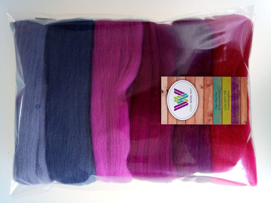 Purple Set* Pure Wool Tops for Needle and Wet Felting, Packs of 30, 60 and 90 Grams (90 g)